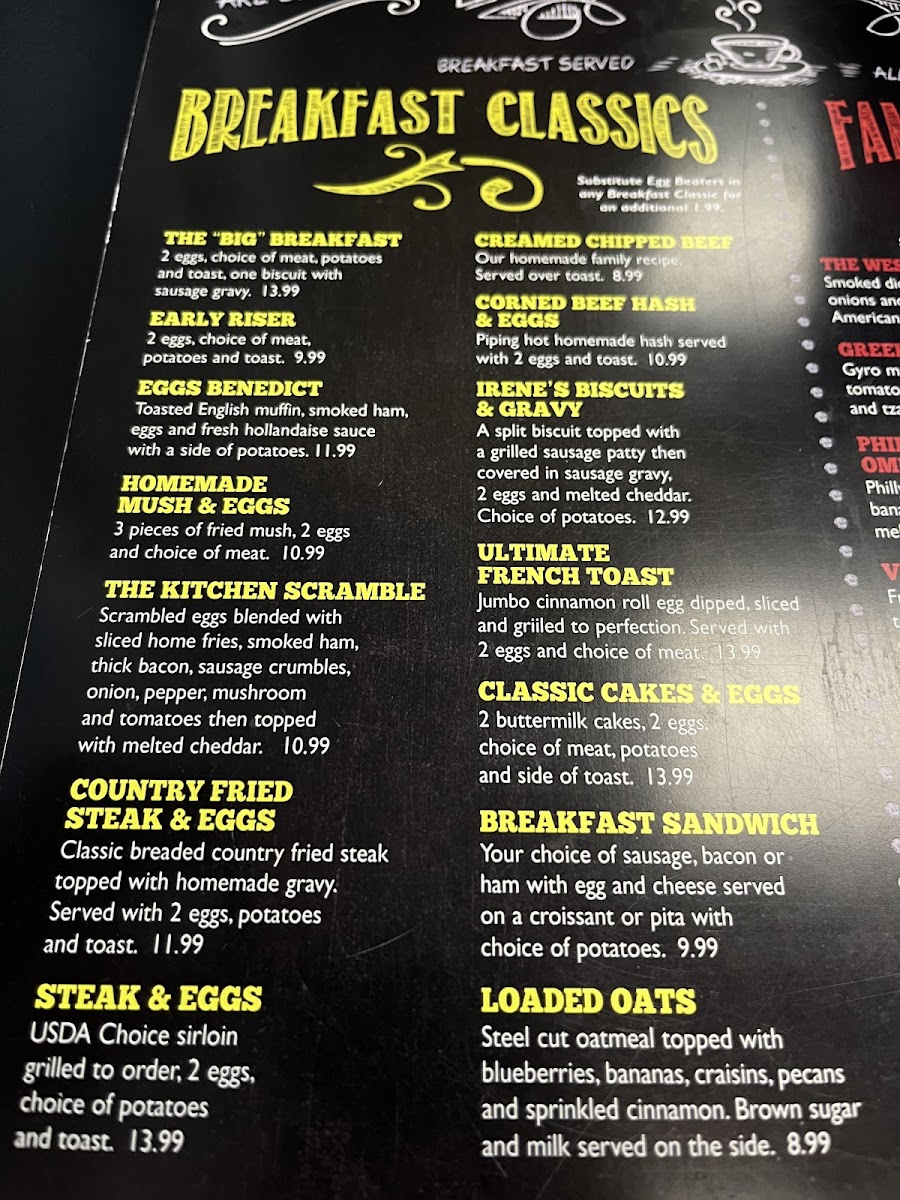 Meet Me At Irene's Menu