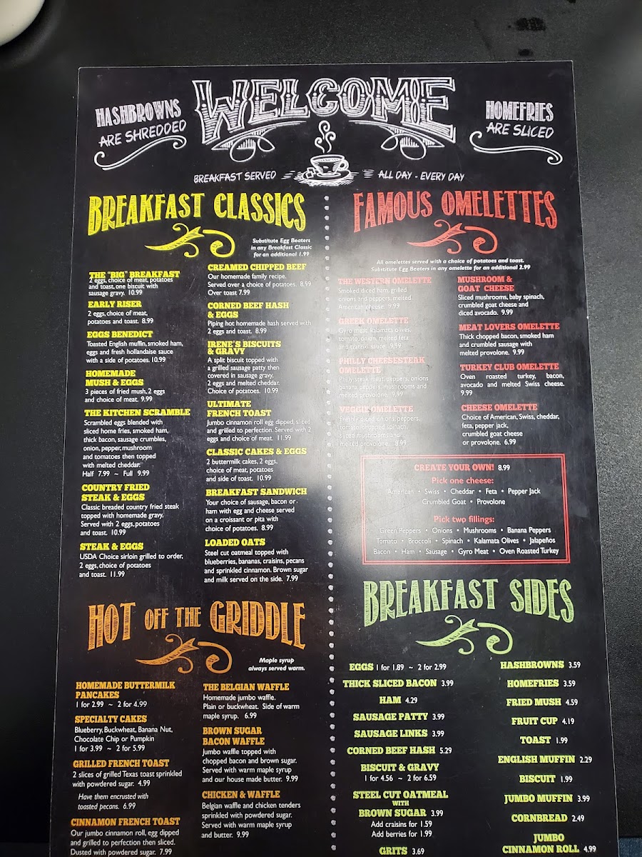 The menu at Meet Me At Irene's offers a straightforward and comforting café experience rooted in classic breakfast and family-friendly dishes. It’s the kind of place where familiar favorites like creamy biscuits and gravy, scrambled eggs, and buckwheat pancakes bring a quiet sense of homestyle comfort to the table.